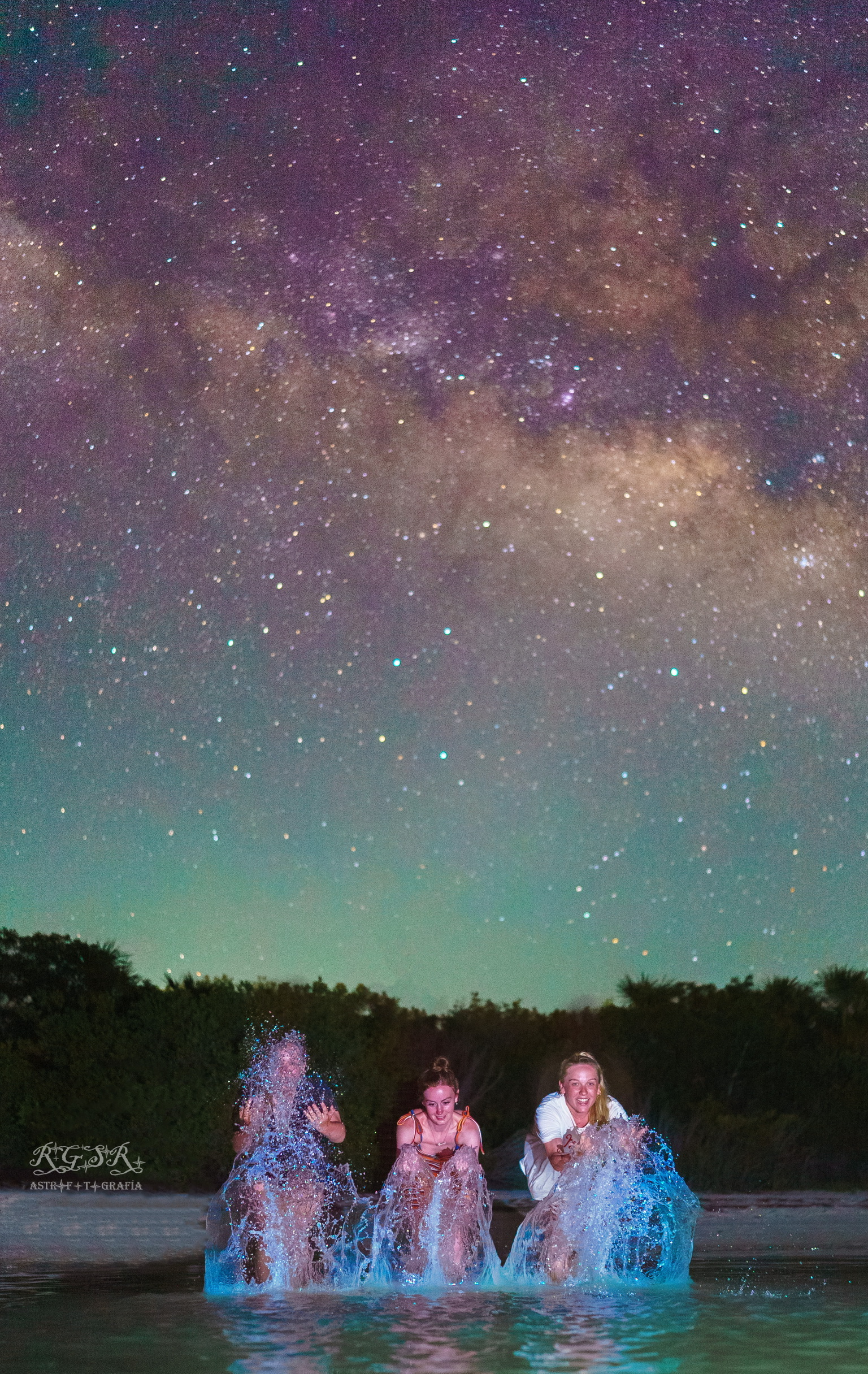 Navega entre estrellas y luz viva Imagina remar bajo un cielo plagado de constelaciones mientras el agua brilla con cada movimiento. Vive el mágico fenómeno de la bioluminiscencia y sumérgete para nadar entre destellos naturales.